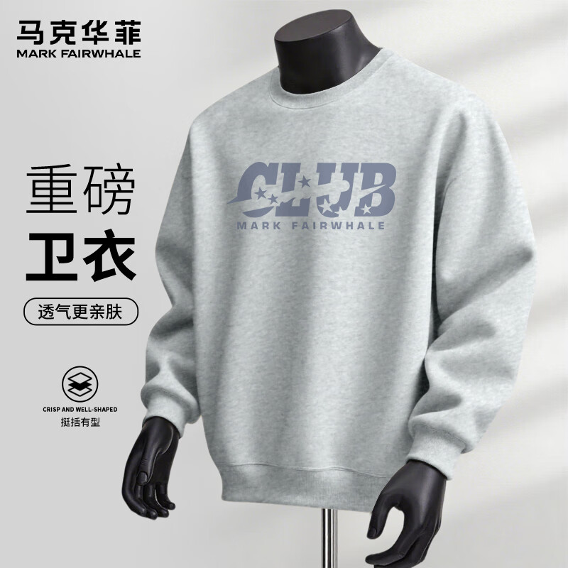 马克华菲春秋季圆领重磅卫衣男休闲宽松细腻亲肤个性印花出街百搭新款外套 【重磅棉】- 灰#JMK五星俱乐部 M