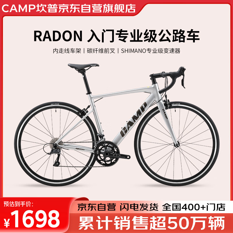 坎普RADON 公路车单车圈刹运动赛车碳纤维前叉自行闪银色18速 500码