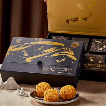 广州酒家利口福 蛋黄果仁红豆沙月饼礼盒720g 4个 广式老字号 中秋商务团购送礼