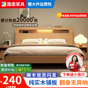 图柔【顺丰闪发】床实木床现代简约双人床主卧大床单人床出租床 单床【促销款】 1.5*2米 框架结构