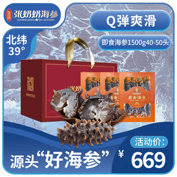 张奶奶大连即食海参3斤 40-50只 礼盒装 高品质无污染 海鲜水产 送礼