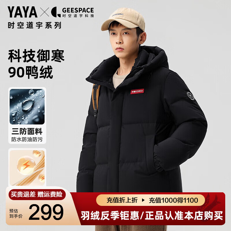 鸭鸭(YAYA)羽绒服男时空道宇短款连帽2025冬季三防抗静电加厚保暖情侣潮外套 星空黑色 XL 【建议150-170斤】