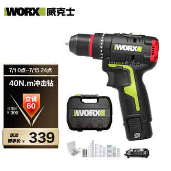 威克士12V无刷冲击钻WU131X.7手电钻锂电池家用工具箱套装(66附件+塑盒)
