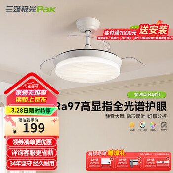 三雄极光风扇灯全光谱LED吊扇灯 电扇灯餐厅客厅家用一体隐形风扇吊灯 店长推荐!性价比风扇灯风尚