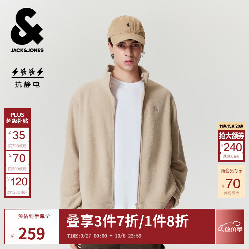 杰克·琼斯(JACK&JONES)男装25年秋冬季摇粒珊瑚绒外套男士立领内搭外穿百搭抗静电夹克 沙棕色 M (175)