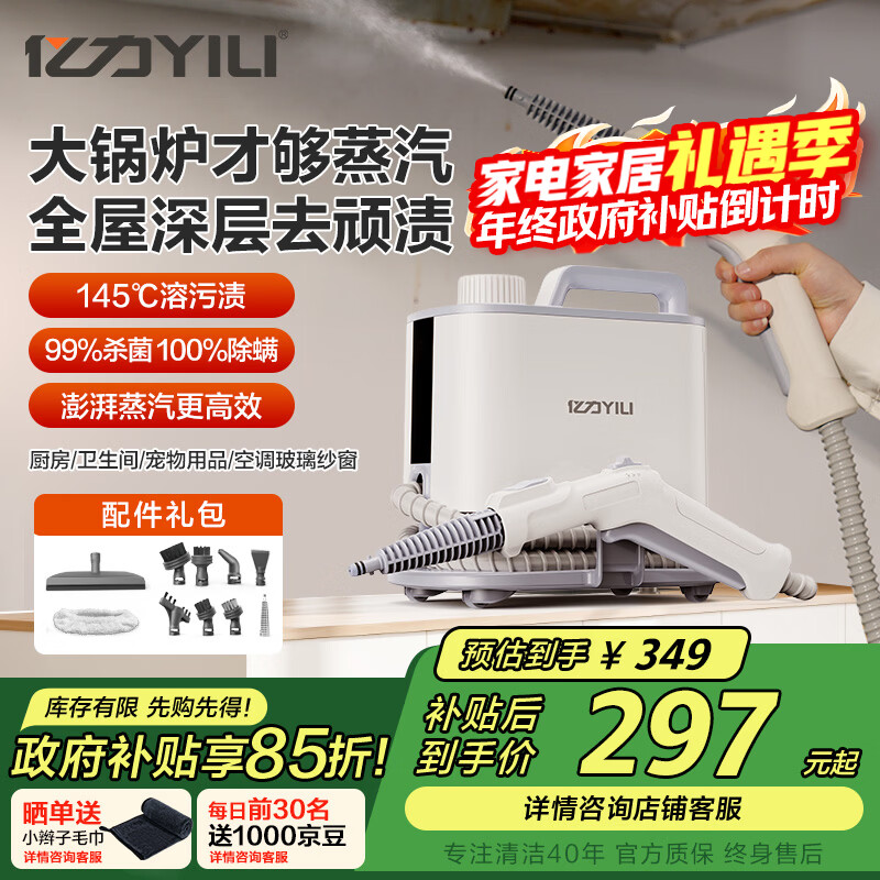 亿力145°高温高压家庭蒸汽清洁机消毒机 全屋油烟机空调地毯家政用清洗神器多功能一体机1003国家补贴