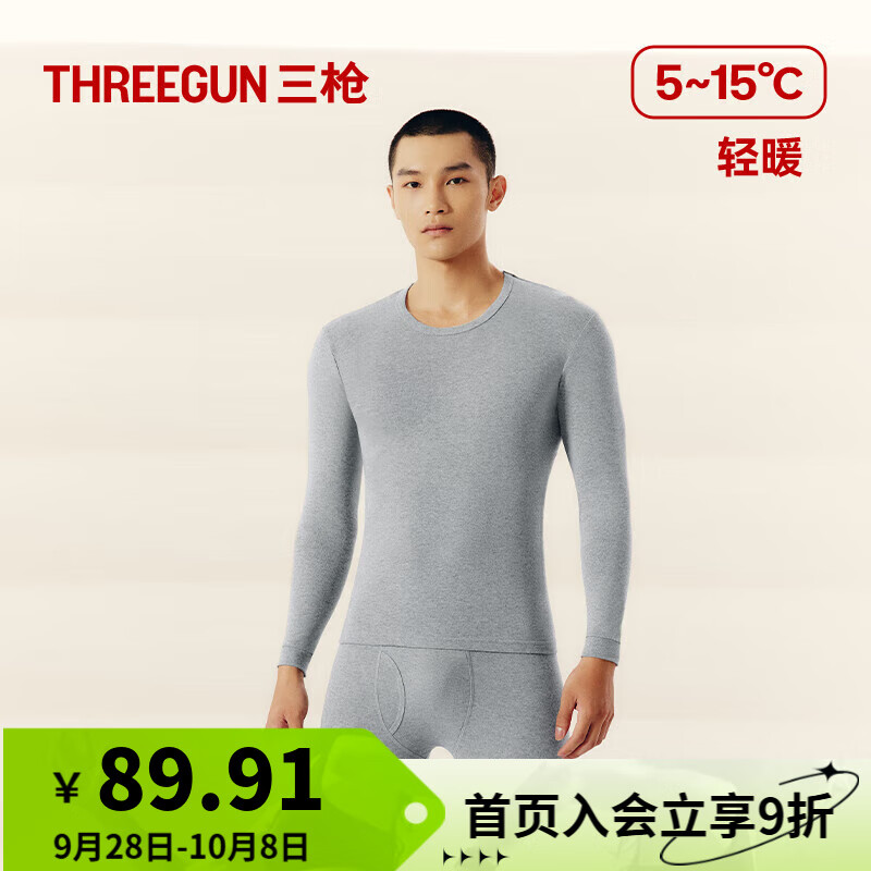 三枪(THREEGUN)秋衣秋裤男女情侣套装纯棉薄款轻暖抗静电保暖内衣吸汗透气 浅麻灰(男圆领) M