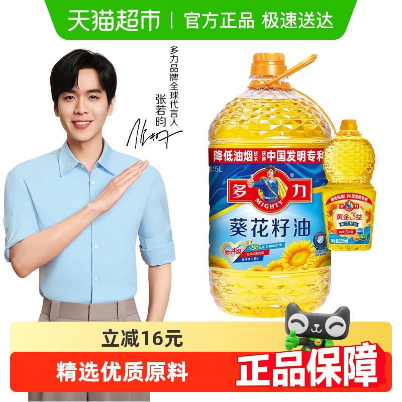 【张若昀同款】多力压榨葵花籽食用油5L+238ml家用桶装食用油清香