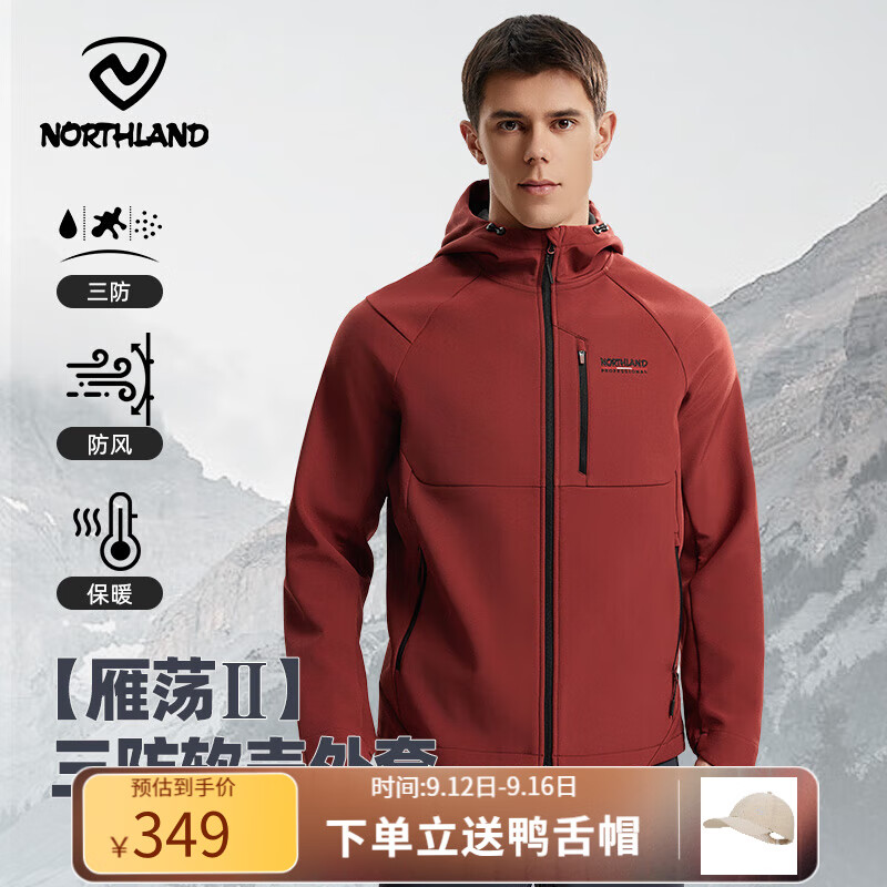 诺诗兰【雁荡】软壳外套男士防泼水徒步户外登山三防夹克外套软壳衣 朱草红色-70E男 180