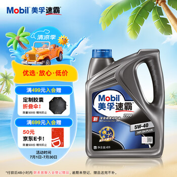 美孚(Mobil)美孚速霸2000 全合成汽机油 5W-40 SN PLUS 4L 汽车保养