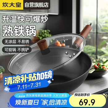 炊大皇 炒锅铁锅 健康无涂层蜂窝纹32cm 家用炒菜锅玄铁XT32CGH
