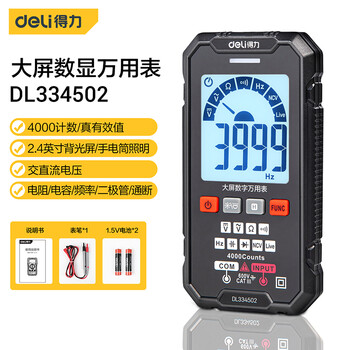 得力(deli)大屏数显万用表多用表电流表万能表超薄智能带电容3999位自动量程