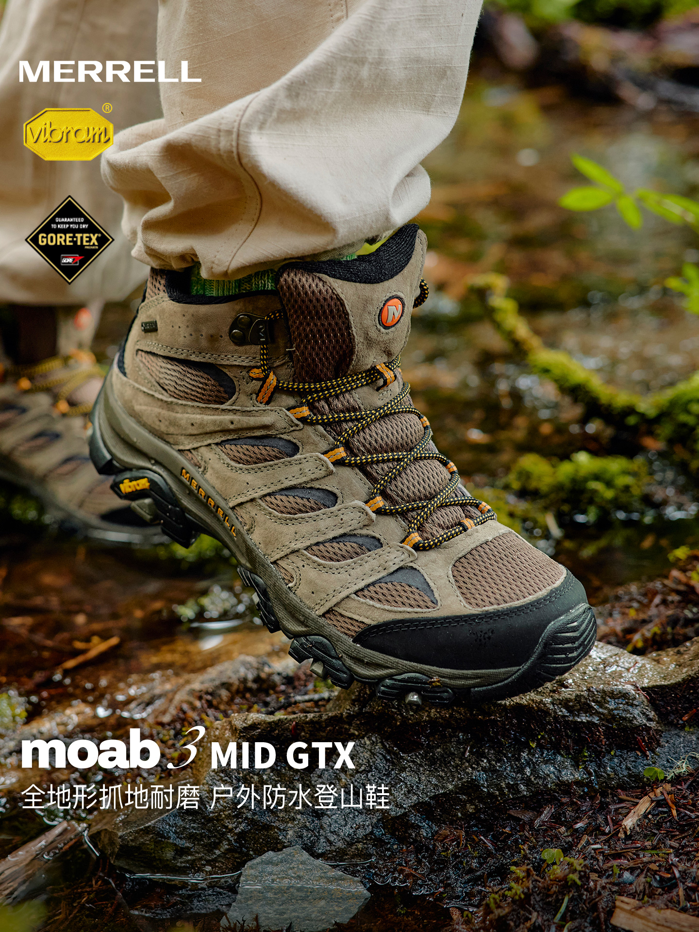 MERRELL迈乐户外运动徒步鞋情侣MOAB3 MID GTX防水透气登山鞋男女