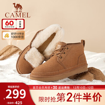 骆驼(CAMEL)男靴 2023冬季户外雪地靴男防滑防寒加绒男款东北棉靴羊毛保暖雪 栗色 39