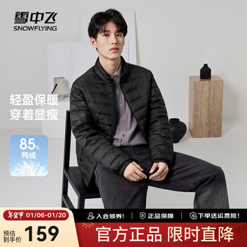 雪中飞男女立领秋羽绒百搭轻薄鸭绒立领修身轻盈隐藏式口袋 宝石黑|8086-男 XL 180/100A