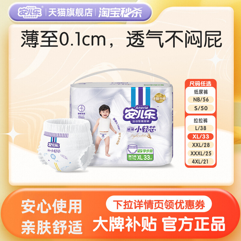 安儿乐小轻芯纸尿裤拉拉裤NB-4XL码婴儿宝宝袋装婴儿官方旗舰店