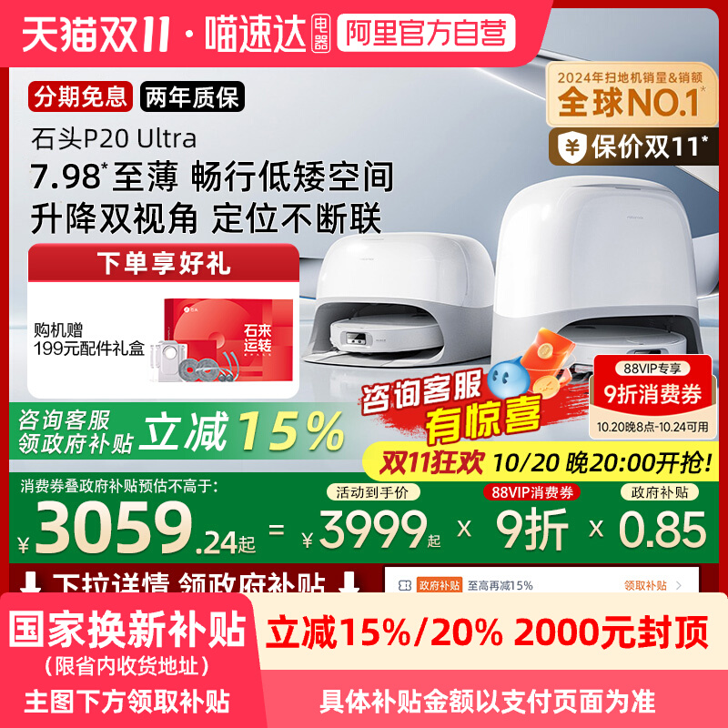 【全国国补15%】石头P20 Ultra扫地机器人吸拖一体自动自清洁新品