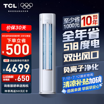 TCL空调大3匹小蓝翼真省电柜机一级能效省电31%变频冷暖节能立式KFR-72LW/RV2Ea+B1以旧换新国家补贴