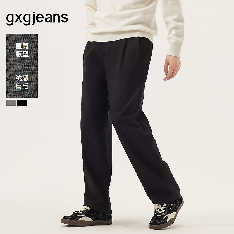 gxg.jeans男装 多色肌理感通勤宽松休闲长裤西裤男士 25年秋新品 黑色 XL (180) -32码