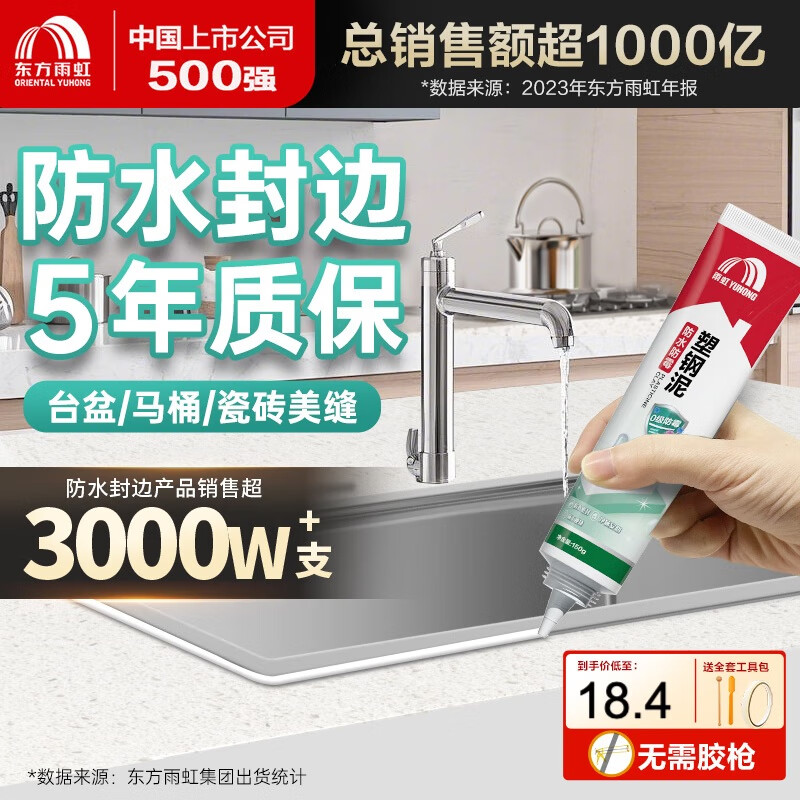 雨虹防水0级防霉防水塑钢泥厨卫密封胶 玻璃胶防水胶 瓷砖美缝剂 白色150g