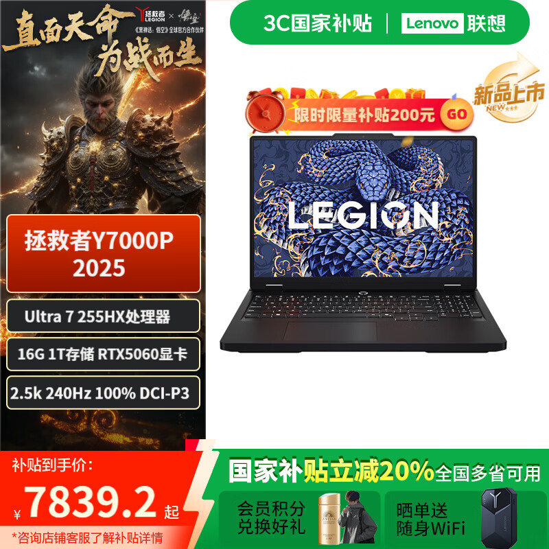 联想拯救者Y7000P 2025 16英寸电竞游戏本笔记本电脑 2.5k 240Hz Ultra7 255HX 16G RTX5060