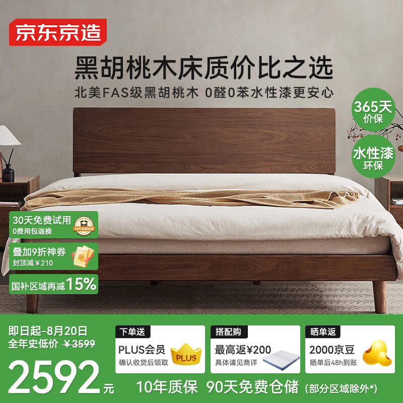 京东京造实木床 兰亭序北美FAS级黑胡桃木环保水性漆主卧双人床1.8x2米