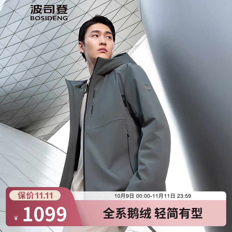 波司登(BOSIDENG)【断码清仓】轻薄鹅绒羽绒服男短款90绒夹克商务通勤外套 杉石绿4702 M 175/96A