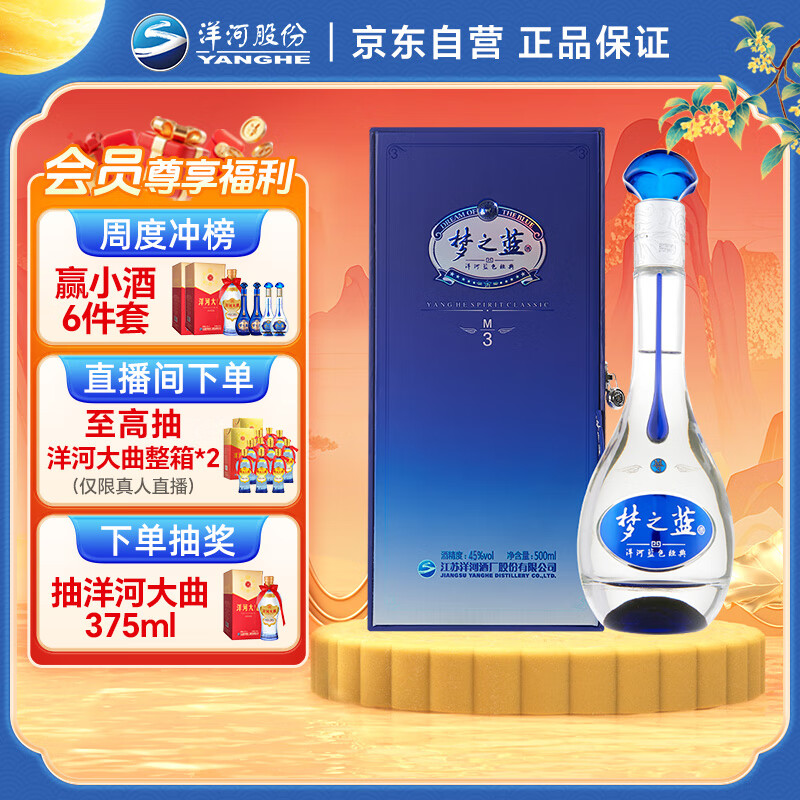 洋河 梦之蓝M3 45度 500ml单瓶装 绵柔浓香型白酒