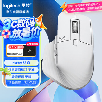 罗技(Logitech)大师系列 MX Master 3S 无线蓝牙鼠标 人体工学 办公 静音鼠标 高端 珍珠白 带无线接收器