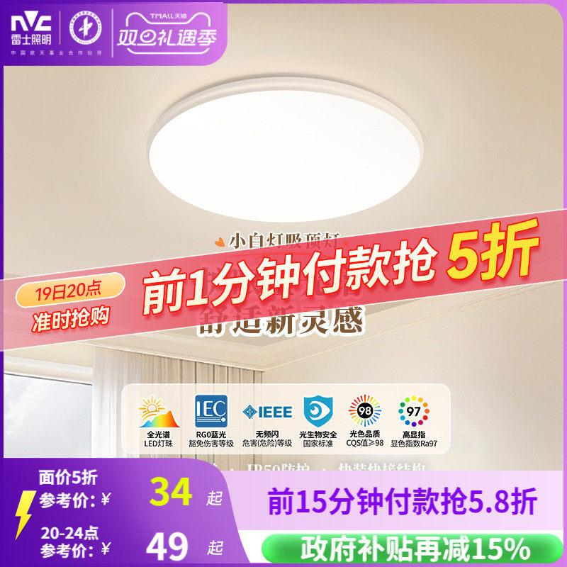 雷士照明小白灯全光谱护眼吸顶灯客厅卧室灯阳台灯2025新款全屋灯
