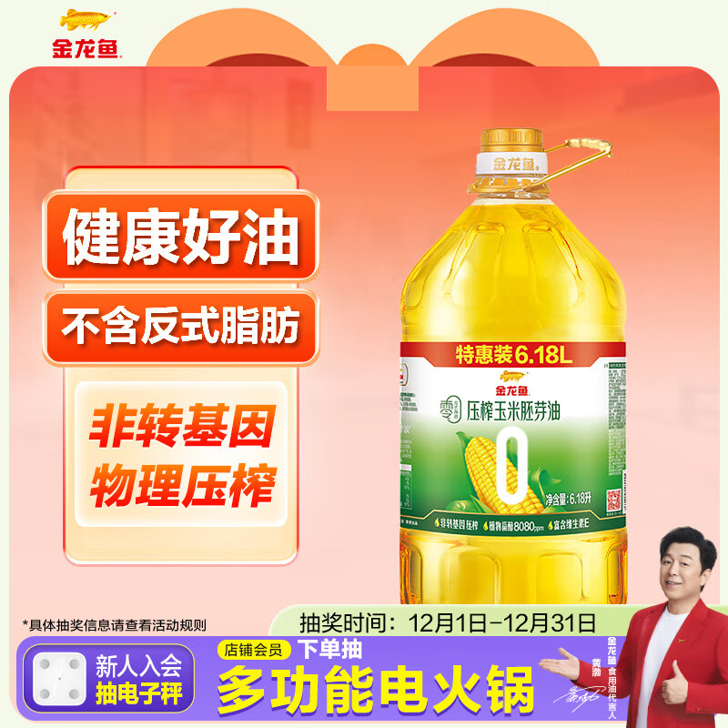 金龙鱼 食用油 非转基因 零反式脂肪压榨玉米胚芽油6.18L