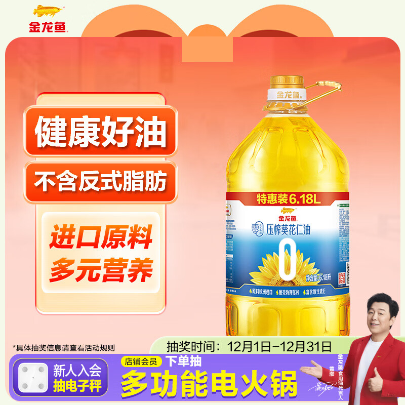 金龙鱼 食用油 零反式脂肪压榨 葵花仁油6.18L
