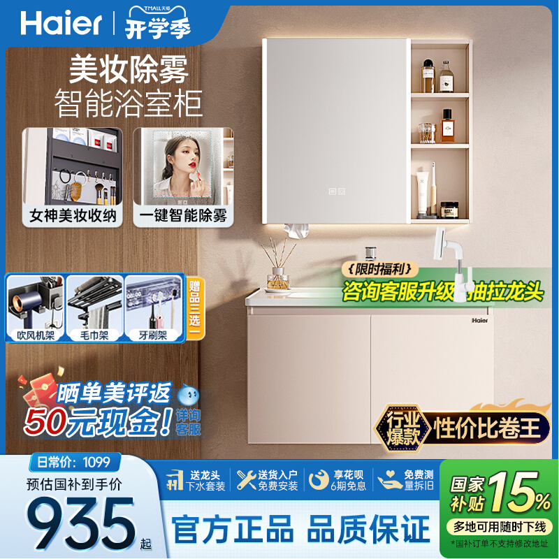 海尔智能浴室柜陶瓷一体盆卫生间洗脸洗手池盆柜