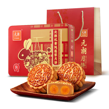 元朗蛋黄月饼礼盒 广式双咸蛋黄白莲蓉 广东广州香港中秋节送礼品720g