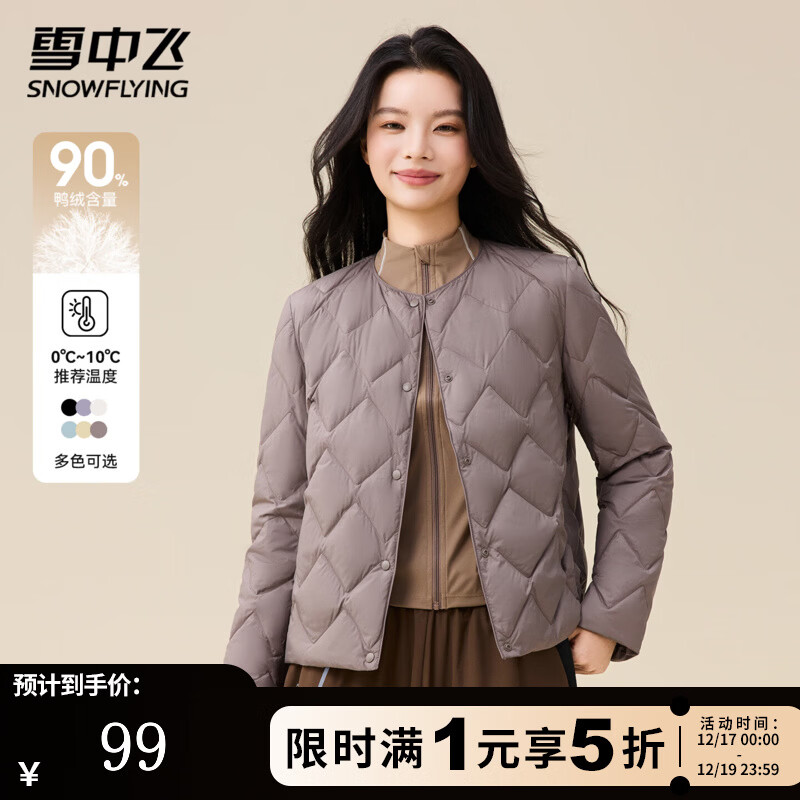 雪中飞轻薄羽绒服内胆女短款冬季保暖防寒纯色御寒衣休闲简约多巴胺外套 棕色 XL (170)