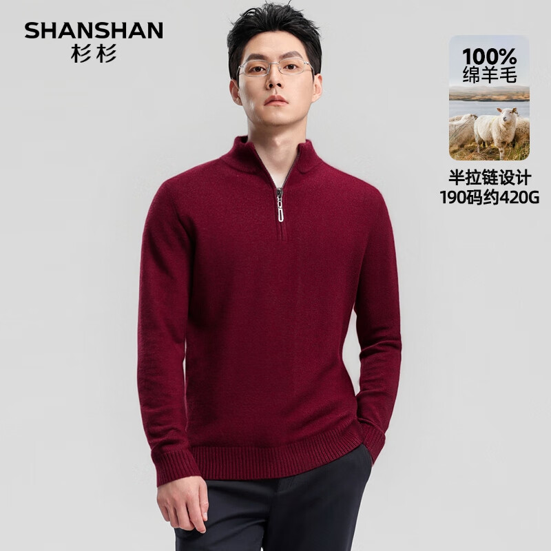 EMZ鄂尔多斯骐骥红【羊毛衫男毛衣】抑菌含羊绒保暖打底针织羊毛衫男 [圆领款-2]中卡其 L 175/92A