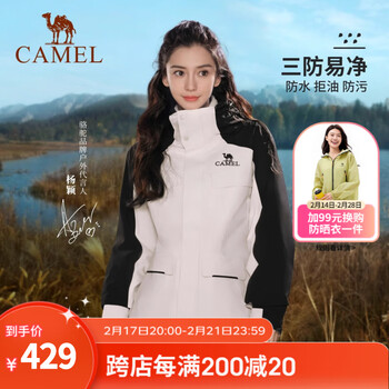 骆驼(CAMEL)户外冲锋衣三防防水登山服新男女三合一外套 A13CA31071,幻影黑/橡木灰,男女同款 M