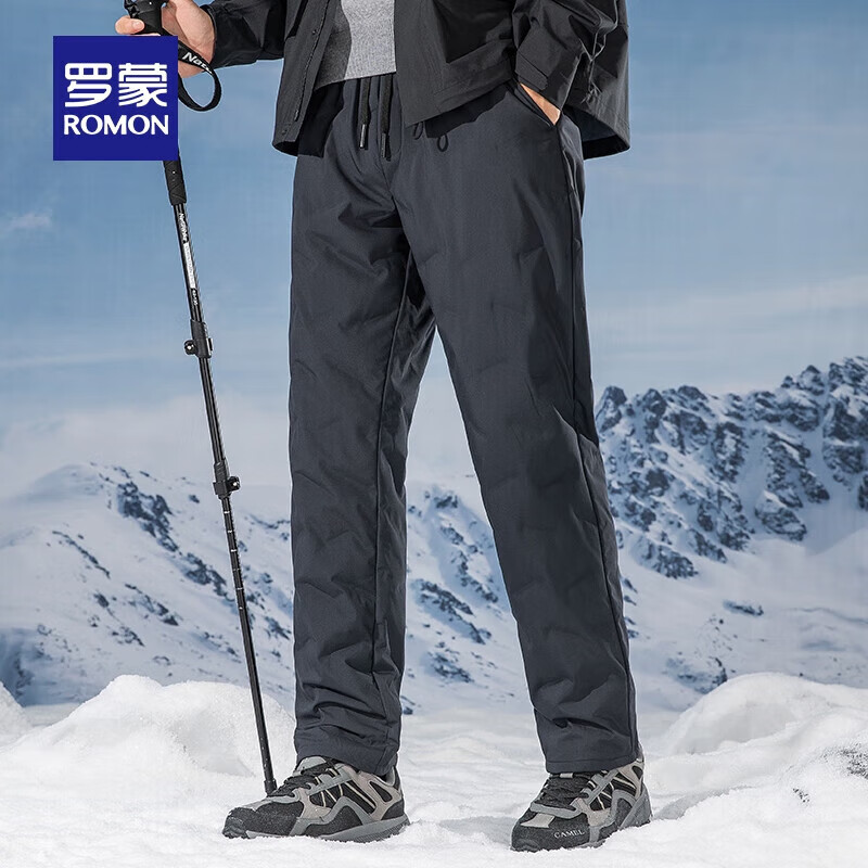 罗蒙(ROMON)男士加厚外穿羽绒裤2024冬季新款中青年防寒保暖加绒休闲长裤 7K035915灰色 4XL 195 建议(200-220斤)