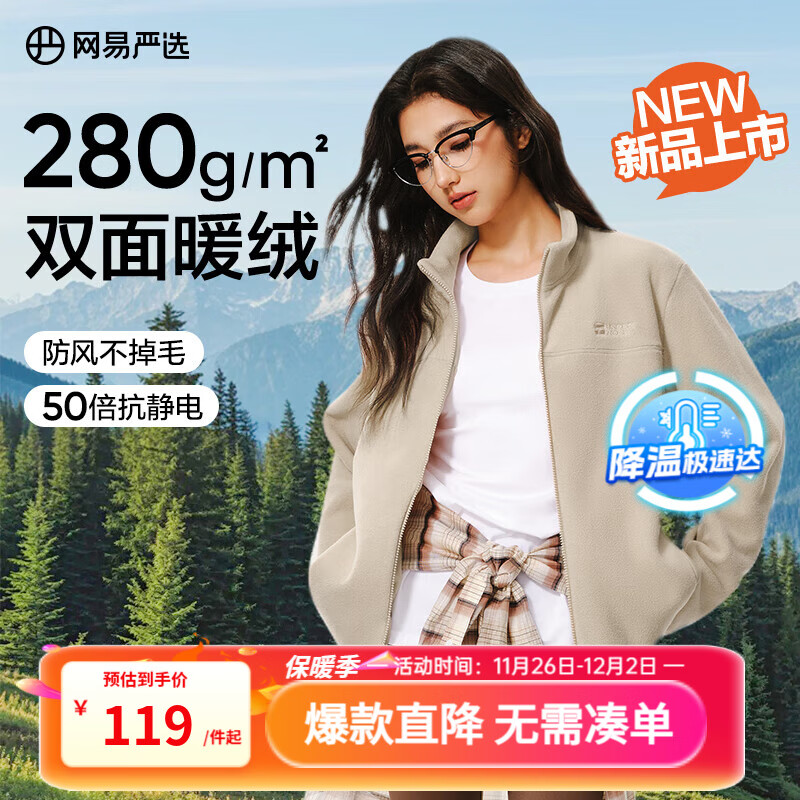 网易严选25新品摇粒绒外套男士夹克冲锋衣内胆夹克蓄热保暖抓绒衣户外休闲 A款25秋冬克重升级-浅米驼 L