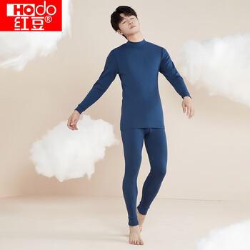 红豆(Hodo)秋冬情侣内衣柔棉半高领秋衣秋裤基础打底保暖内衣套装 琉璃蓝男款 170/95