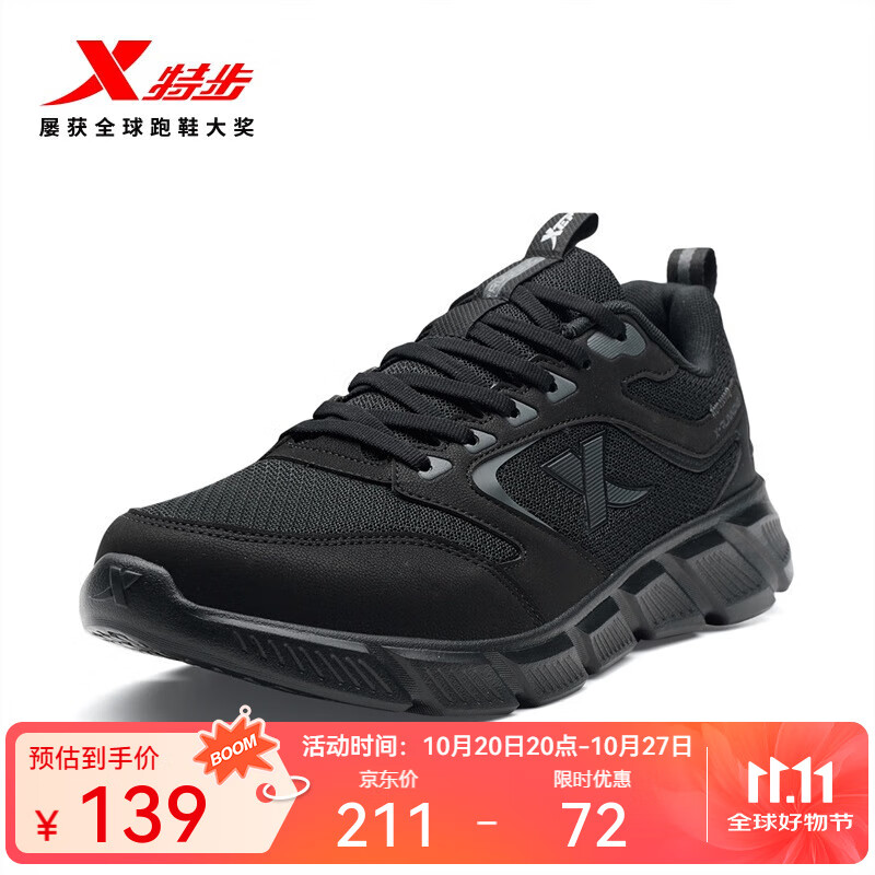 特步跑步鞋男新款透气轻盈耐磨运动休闲鞋男防滑通勤穿搭徒步跑鞋 黑 42