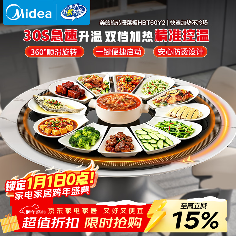 美的(Midea)暖菜板 火锅加热垫 饭菜保温板加热板 热菜板家用多功能旋转餐桌转盘(60CM圆形)可旋转HBT60Y2