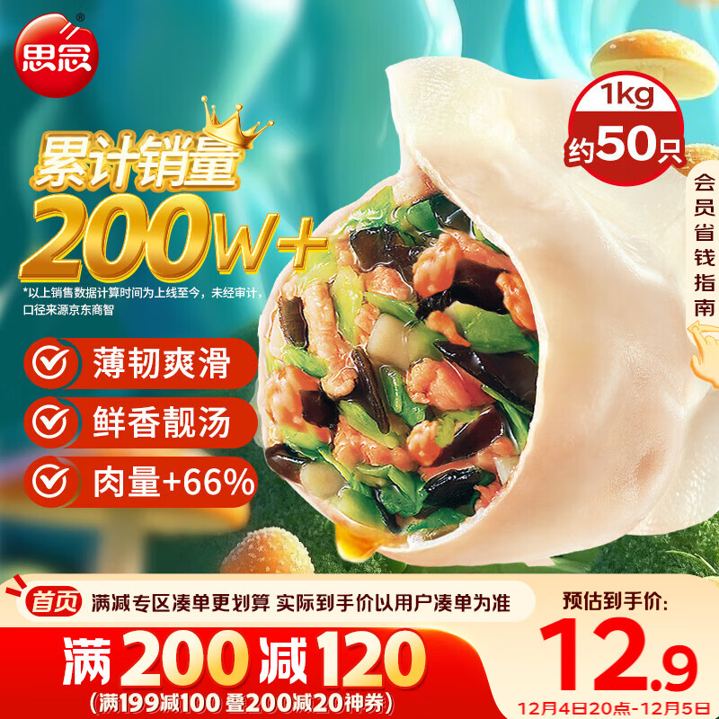 思念灌汤新一代三鲜水饺1Kg约50只 早餐食品水饺速冻饺子蒸饺