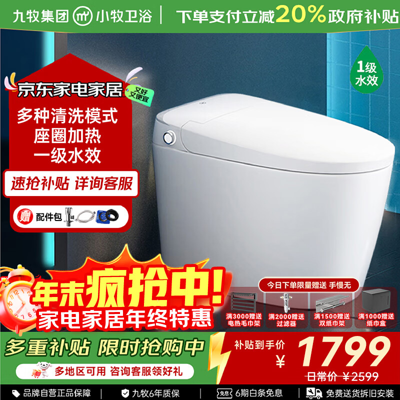 九牧(JOMOO)智能马桶小牧卫浴智能除臭抗菌零压带水箱一体式坐便器 X3-5130 座圈加热+清洗烘干+抗菌 305/300mm 【290-390以内选择】