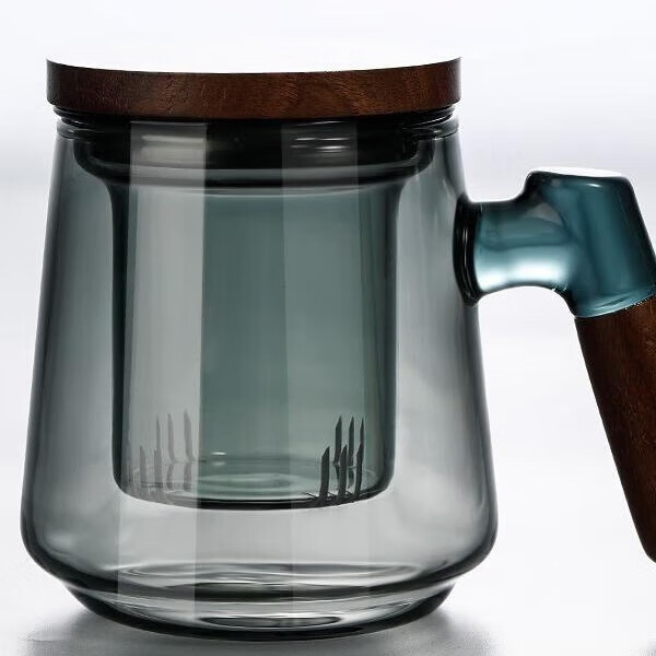 观山泡茶杯茶水分离过滤花茶杯专用玻璃水杯办公室喝茶杯子 透黑三件杯(无观山 301-400ml