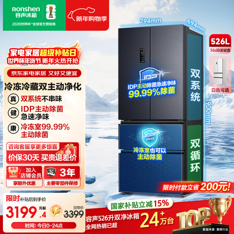 容声526升双净双系统法式多门四开门电冰箱家用一级能效风冷无霜节能大容量国家补贴 BCD-526WD1MPA-EQ51 星空灰