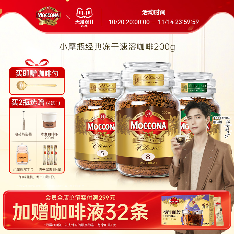 【美食爆款惊喜红包】摩可纳moccona咖啡冻干速溶黑咖啡深度200g