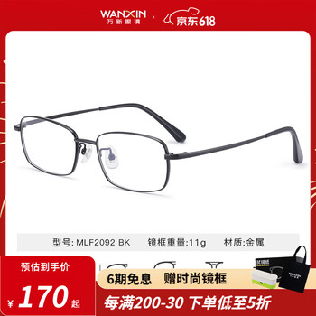 万新(WAN XIN) 近视眼镜防蓝光辐射非球面现片配眼镜框男女0-1500度配成品眼镜 金属-全框-2092BK-黑色 1.74多屏防蓝光镜片(近视酷薄)