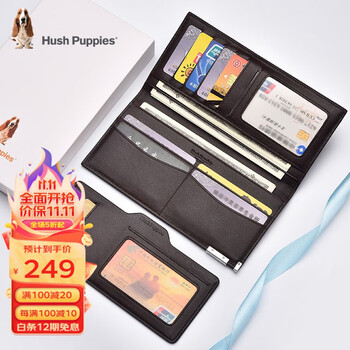 暇步士(Hush Puppies)男士钱包真皮长款钱夹头层牛皮钱卡包两件套可拆分 214W啡色