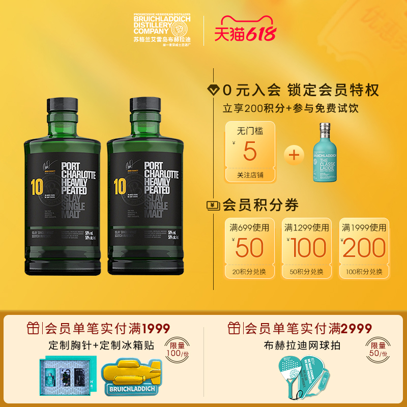 【品牌旗舰】布赫拉迪波夏擢跃10年500ml*2单一麦芽重泥煤威士忌